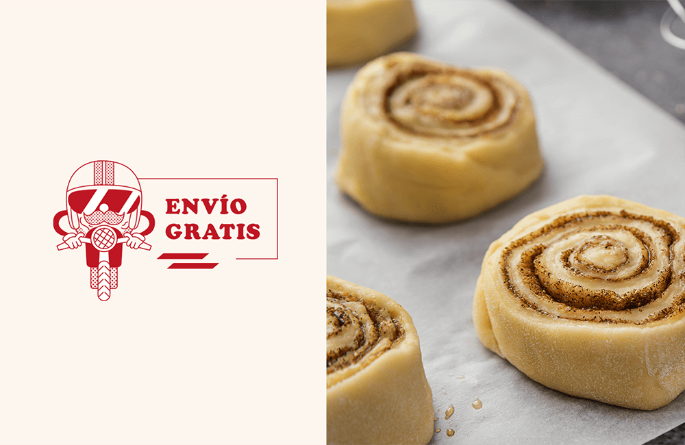 Se trata de un restaurante que sirve postres y snacks a domicilio. Se diseñó un logotipo basado en su especialidad, los roles de canela, el cuál tiene puestos unos patines, esto porque inicialmente las entregas iban a ser solo en una zona de la ciudad de Cancún, y se entregarían en patines, pero luego se consideraron más zonas de la ciudad, y las entregas pasaron a hacerse en motocicleta, sin embargo, los patines se quedaron en el logo ya que le daban un estilo visual único que le otorgaba valor al estilo vintage que ya tenía la identidad visual.